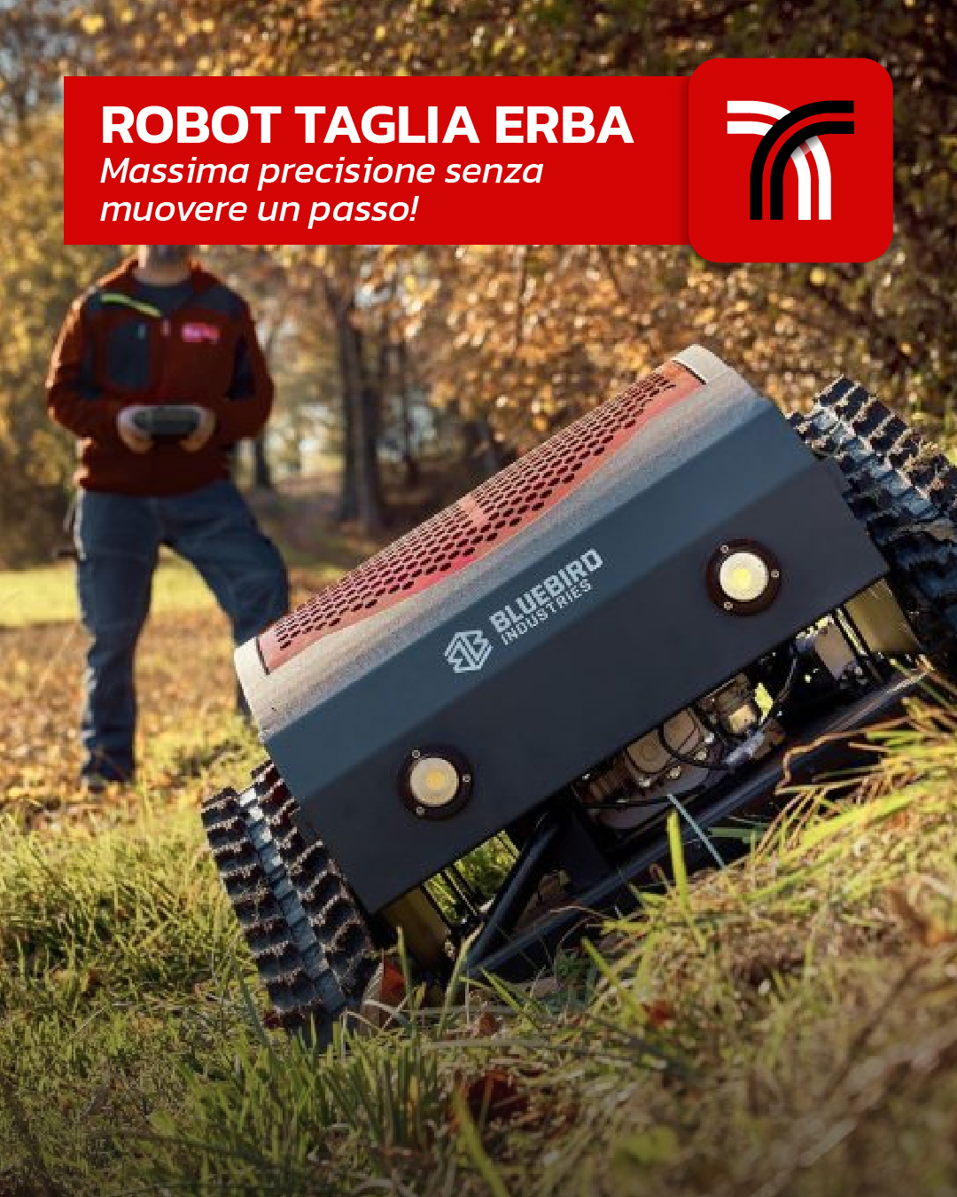23 Settembre 2025Il Blue Bird FM 24-70 è il robot trincia ibrido ideale per professionisti del verde. Progettato per terreni impegnativi, unisce un potente motore a scoppio da 452 cc a due motori elettrici per un’avanzata precisione.