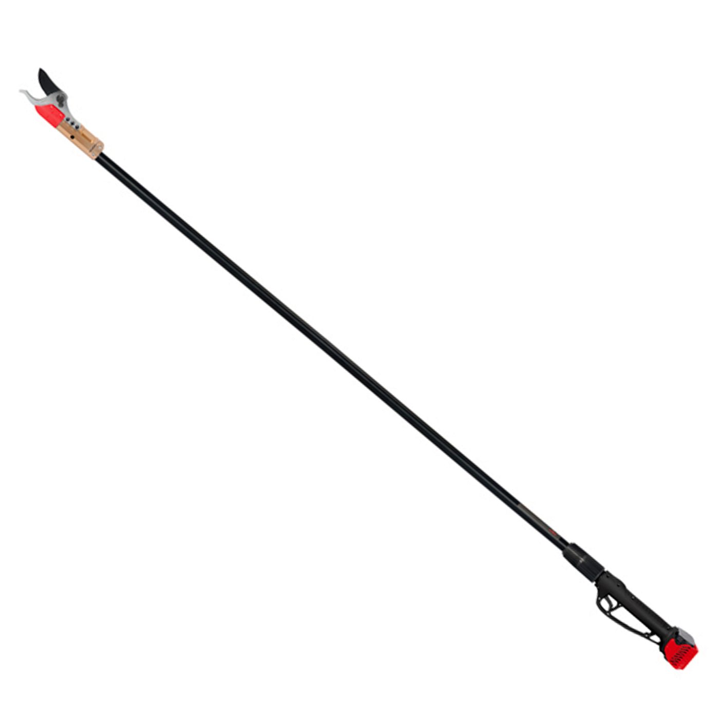 L’asta da 220 cm permette di raggiungere agevolmente i rami più alti, eliminando la necessità di scale o piattaforme. Questo si traduce in maggiore sicurezza, rapidità di lavoro e comfort operativo, soprattutto nella potatura dell’olivo e delle piante ad alto fusto. Nonostante la struttura robusta, la forbice mantiene un peso contenuto di soli 3,2 kg (batteria inclusa) ed è realizzata con materiali resistenti come alluminio e polimeri, che garantiscono durata nel tempo e un’ottima maneggevolezza.
