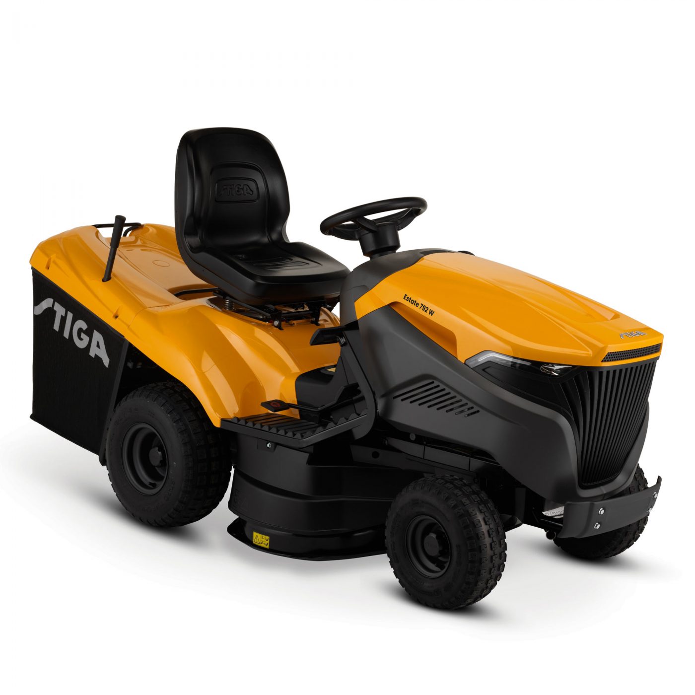 Costruito con materiali robusti, come la scocca in acciaio smaltato e il muso anteriore rinforzato, il trattorino Stiga Estate 792 W garantisce una lunga durata nel tempo. Il comfort dell’operatore è assicurato da un sedile regolabile con schienale alto, un volante ergonomico con impugnatura soft grip e un cruscotto con comandi semplici e intuitivi, tra cui accensione elettrica con chiave, innesto lame tramite pulsante, regolazione dell’altezza di taglio, freno a pedale e spie di controllo che segnalano lo stato della macchina. Le ruote posteriori maggiorate da 18 x 8.50 - 8 e le anteriori da 15 x 6.00 - 6 garantiscono massima stabilità e trazione anche su terreni non perfettamente piani, mentre l’assale anteriore pivottante migliora il bilanciamento durante l’uso.